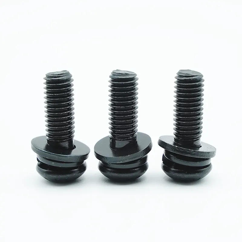 Jinsixis schwarzes Oxid-Hex-Sockel-Knopfkombinationsschrauben sind fabrikmodell mit Schrauben, flachen Unterlegscheiben und Federscheiben. Die Schrauben liefern die wichtigste Befestigungskraft, die flachen Unterlegscheiben befinden sich zwischen der Oberfläche des Steckers und den Federscheiben, und die Federscheiben befinden sich zwischen den flachen Unterlegscheiben und den Schraubenköpfen. Nach der Montage fallen die Unterlegscheiben nicht leicht von den Schrauben aus, wodurch es einfach ist, zu transportieren, zu speichern und zu verwenden und gleichzeitig viel Zeit und Mühe zu sparen.