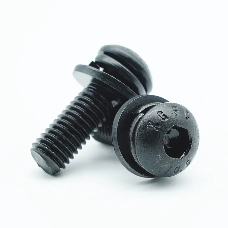 Der Kernwert unserer eigenen Marke Jinsixis Black Oxid Hex Socket Button Head-Kombinationsschrauben liegt in der Kombination der hervorragenden Anti-Loosing-Leistung mit extrem hoher Montage-Effizienz. Gleichzeitig kann der von den geschwärzte Schrauben erzeugte Oxidfilm die Schrauben effektiv von direktem Kontakt mit Luft und Feuchtigkeit isolieren und eine bestimmte Antikorrosionsfähigkeit aufweist. Obwohl die schwärzende Behandlung der Kombinationsschrauben kostspielig ist, hat sie einen matten Effekt, ein schönes und gleichmäßiges Erscheinungsbild und hat fast keinen Einfluss auf die Gewindegenauigkeit der Schrauben. Darüber hinaus sind Jinsixis Black Oxid Hex Socket Button Head-Kombinationsprozesse relativ umweltfreundlich und haben eine hohe Kosteneffizienz. Es ist eine beliebte, effiziente und zuverlässige Befestigungslösung in der modernen Fertigungsindustrie.