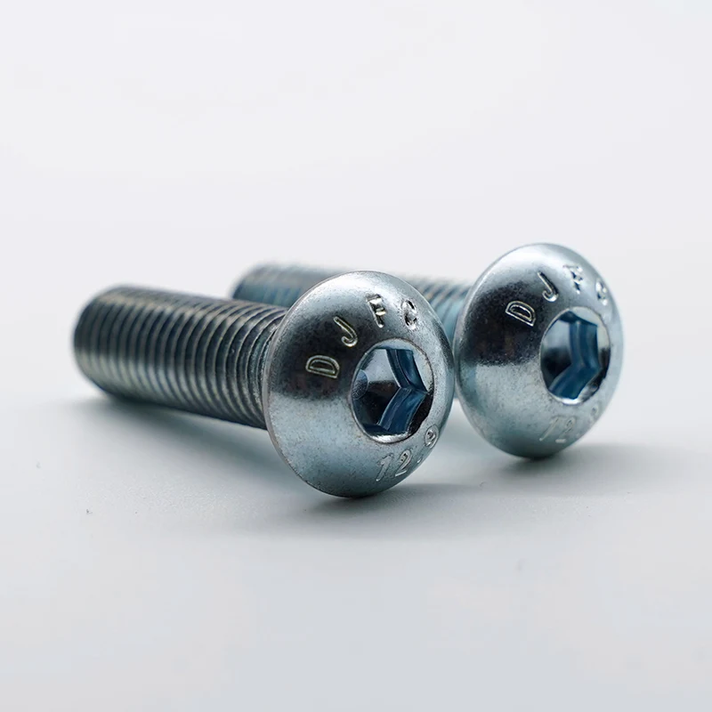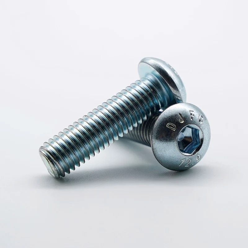 Der für verzinkte Halbrundkopfschrauben mit Innensechskant verwendete Elektroverzinkungsprozess dient der präzisen Steuerung der Ablagerung der Zinkschicht durch elektrischen Strom bei niedriger Temperatur, um eine gleichmäßige Beschichtung und eine glatte Oberfläche zu gewährleisten. Es hat nur minimale Auswirkungen auf die mechanischen Eigenschaften des hochfesten Substrats der Güteklasse 12,9 und vermeidet effektiv das Risiko einer Wasserstoffversprödung. Es verändert die Größe des Werkstücks nicht und eignet sich besonders für die Präzisionsmontage und anschließende Lackierarbeiten. Im Vergleich zur Feuerverzinkung hat die Elektroverzinkung ein feineres Aussehen, eine präzisere Maßkontrolle und ist besser für Standardteile in Industriequalität geeignet. Die Sorte 12.9 stellt eine Sorte mit ultrahoher Festigkeit dar und ihre maximale Zugfestigkeit und Streckgrenze übertreffen die von gewöhnlichen Kohlenstoffstahl- oder Edelstahlschrauben bei weitem. Gleichzeitig verleiht es den Schrauben eine hervorragende Zug-, Scher- und Ermüdungsfestigkeit und eignet sich besonders für raue Arbeitsbedingungen mit hohen Belastungen, Stoßbelastungen oder Dauervibrationen. Es bietet erhebliche Vorteile bei Anwendungen, die eine hohe Vorspannung erfordern, um die Verbindungszuverlässigkeit sicherzustellen.
